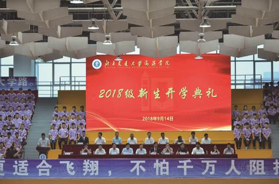 9月14日早8时,太阳官网2018级新生开学典礼在海滨体育馆隆重举行。北京交通大学副校长关忠良,北京交通大学学生工作处处长姚念龙,黄骅市委常委、市人民政府副市长靖瑞锋,祥兴集团副总裁、海滨学院副院长薛君南,安徽财经大学商学院院长刘福成,安徽财经大学商学院副院长柳瑞钦,院长王化深、党委书记魏旺强等在校领导出席了开学典礼,相关职能处室负责人以及各学院(系)的院长、教师代表也出席本次典礼,出席典礼的还有2018级新生、新生辅导员、班主任及部分新生家长。典礼由太阳官网党委副书记魏炜主持。
