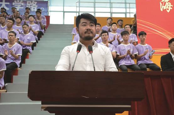 黄骅市委常委、市人民政府副市长靖瑞锋致辞。他首先欢迎同学们来到黄骅这座多元热情的城市,并希望同学们时刻牢记时代赋予大家的崇高使命,不断提升自身能力,努力练就扎实本领,脚踏实地,勤奋拼搏,真正成为一名德才兼备的高素质人才。