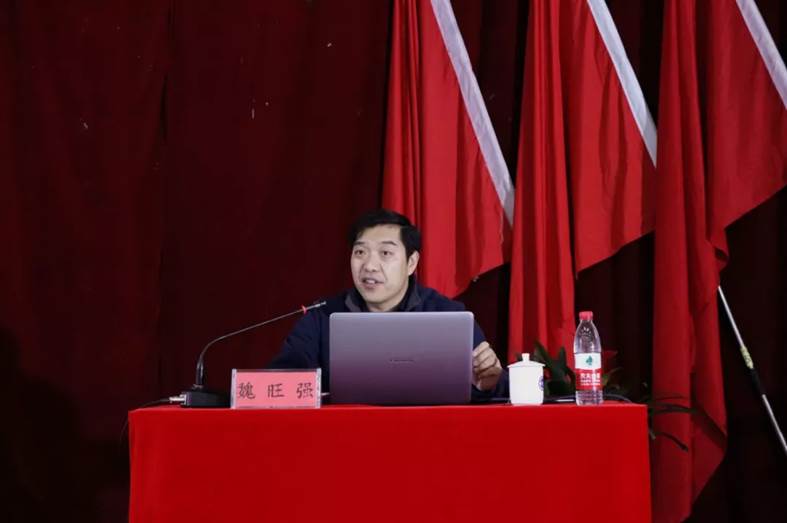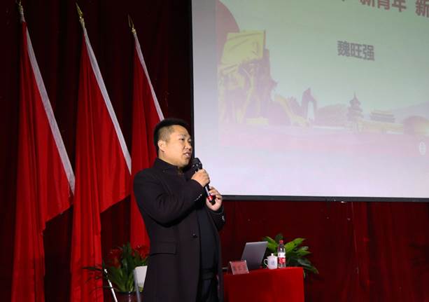 魏旺强书记从上海进口博览会的成功举办展示了中国实力谈起,结合国内外的形势,十九大的战略部署,中国进入新时代的历史定位,谈到中国的新征程、新目标为当代大学生赋予的新使命。