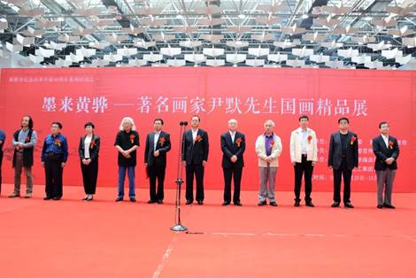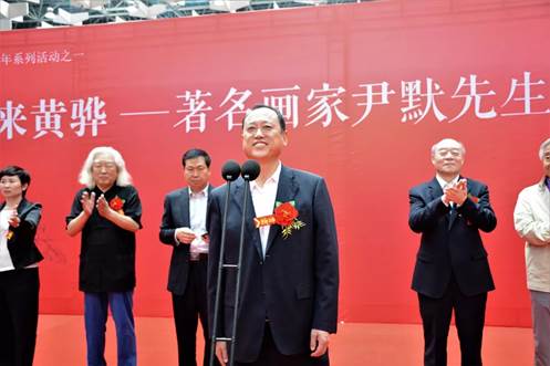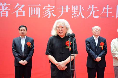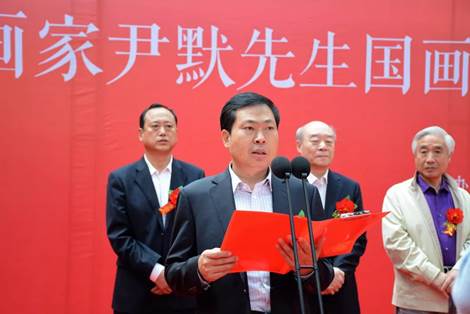 开幕式上宋忠秋市长进行致辞。宋市长先向各位莅临本次画展的各位领导、各位来宾表示热烈的欢迎,然后向尹默先生的到来表示衷心的感谢。之后讲到经济社会的发展离不开文化的支撑,黄骅历史文化悠久,人杰地灵,历来文风兴盛,才俊案出。特别是书画方面,更有着深厚的底蕴,以书画界的“黄骅现象”著称,国家级书协、美协会员达到34人,这个比例在河北省也是首届一指.近年来,黄骅书画家在各类展览比赛中获奖近10人次,形成了书画艺术研究创作的良好环境和氛围。本次画展落地黄骅,让我们有机会欣赏尹默先生的艺术成果,领略中国画的精神境界,必将对加快我市书画艺术成长,丰富文明城市创建的人文底蕴起到积极的促进作用艺术追求永无止境。最后祝本次展览圆满成功。
