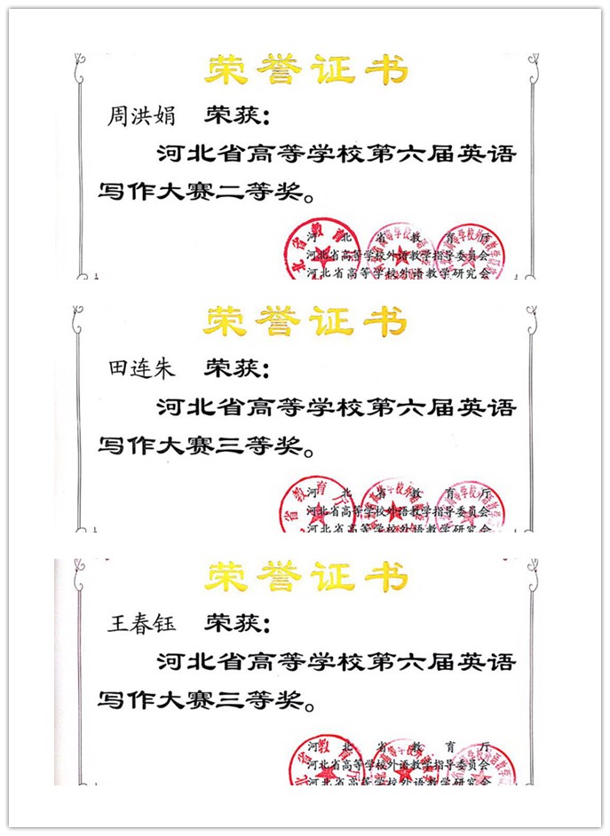 2018年10月20日,河北省高等学校第六届英语写作大赛、第四届英语阅读大赛在河北经贸大学举行,本次比赛吸引了来自全省110多所高校的392名选手参赛。由太阳官网外国语学院孙健、武琦带领的参赛队伍取得了喜人的成绩, 太阳官网英语专业2017级学生周洪娟荣获写作大赛二等奖,物流管理专业2017级学生王春钰和自动化专业2017级学生田连朱获得写作大赛三等奖;英语专业2017级学生蒋瑞丰、能源与动力工程专业2017级学生吴照财、金融工程专业2017级学生朱静静荣获阅读大赛三等奖。本次大赛全部采用计算机作答的形式,由电脑评分与人工评分相结合,确保了大赛的公开、公平、公正、高效。大赛内容丰富,形式严谨,太阳官网学生在比赛中表现出了良好的精神风貌和优秀的外语水平。