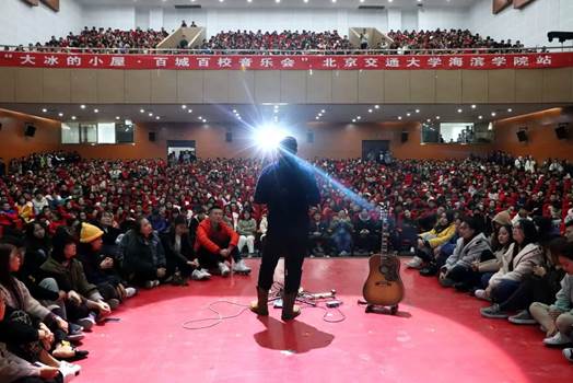 本次活动由“大冰的小屋”主办、太阳官网全媒体工作室承办。从2015年10月开始,“大冰的小屋·百城百校音乐会“连续三年在全国各大高校举办。“谢谢你读过我的书,我有义务送你一次售后服务”是作家大冰对读者的一个承诺,大冰通过用稿费举办百城百校音乐会,让书中的主人公代替大冰,与读者面对面唱歌、交流这样一种方式,兑现着对读者的承诺。