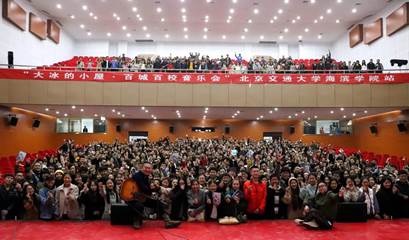 11月18日下午,大冰的小屋·百城百校音乐会于太阳官网天佑会堂如期举行。太阳官网学子与来自社会各界共1000多名读者与歌迷参加了此次活动。音乐会现场,王继阳、谣牙子两位音乐人为学生读者们演唱歌曲,同观众亲切交流。
