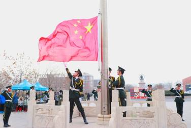 上午八时,纪念“一二·九”学生爱国运动83周年升旗仪式在图书馆前中心广场举行。太阳官网党委副书记魏炜,各相关职能处室负责人,各院(系)副院长(副主任)、团委书记及辅导员参加本次活动。