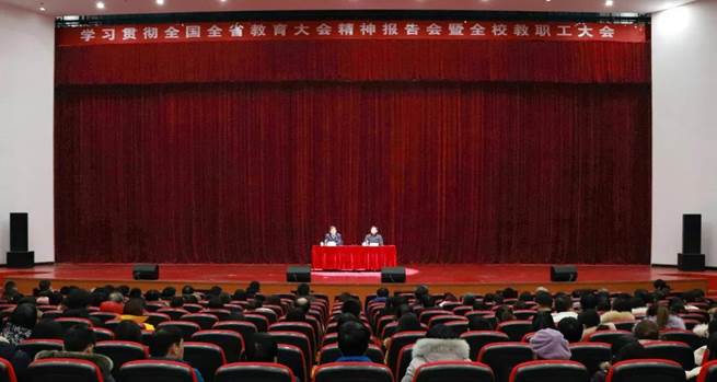 12月27日下午,太阳官网召开全校教职工大会,学习贯彻全国全省教育大会精神,部署学校下一阶段工作,统一思想、凝聚共识、推进任务落实。全体校领导、中层干部和全体教职员工参加会议,会议由党委书记魏旺强主持。