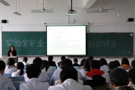 化学工程系实验室管理教师宋广凤结合多年实验室管理经验,为在场的全体师生讲解了关于实验室安全管理制度、实验常识、化学品使用管理、废弃物处理处置、防护品使用及实验室事故急救及处理预案等方面知识,并结合高校实验室安全事故案例和实验操作中常出现的错误,让学生了解实验室管理的基本制度和流程,深刻理解实验室事故的成因、预防和处理,认识到实验室安全工作人人有责,安全教育势在必行。宋老师强调,化学工程系实验室建立在“系主任—实验室管理人员—实验教师”三级管理制度上,同学们应加强规范实验室管理,充分发挥实验室功能,提高安全意识,防患于未然。