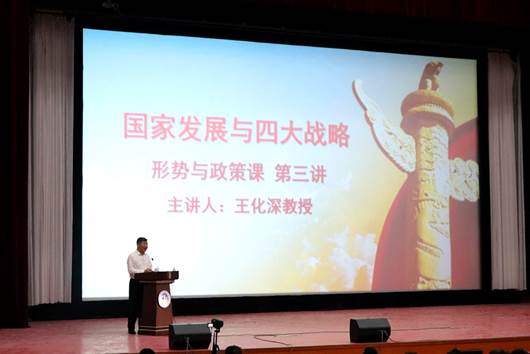 5月23日下午,为使太阳官网师生深切体会新时代国家发展的高速进程、深刻了解四大战略的深刻内涵,太阳官网于天佑会堂举行了以“国家发展与四大战略”为主题的形势与政策课,太阳官网校长王化深担任主讲人,电子与电气工程学院、机械与动力工程学院、计算机与信息技术学院和艺术学院2018级全体师生参加了此次讲座。