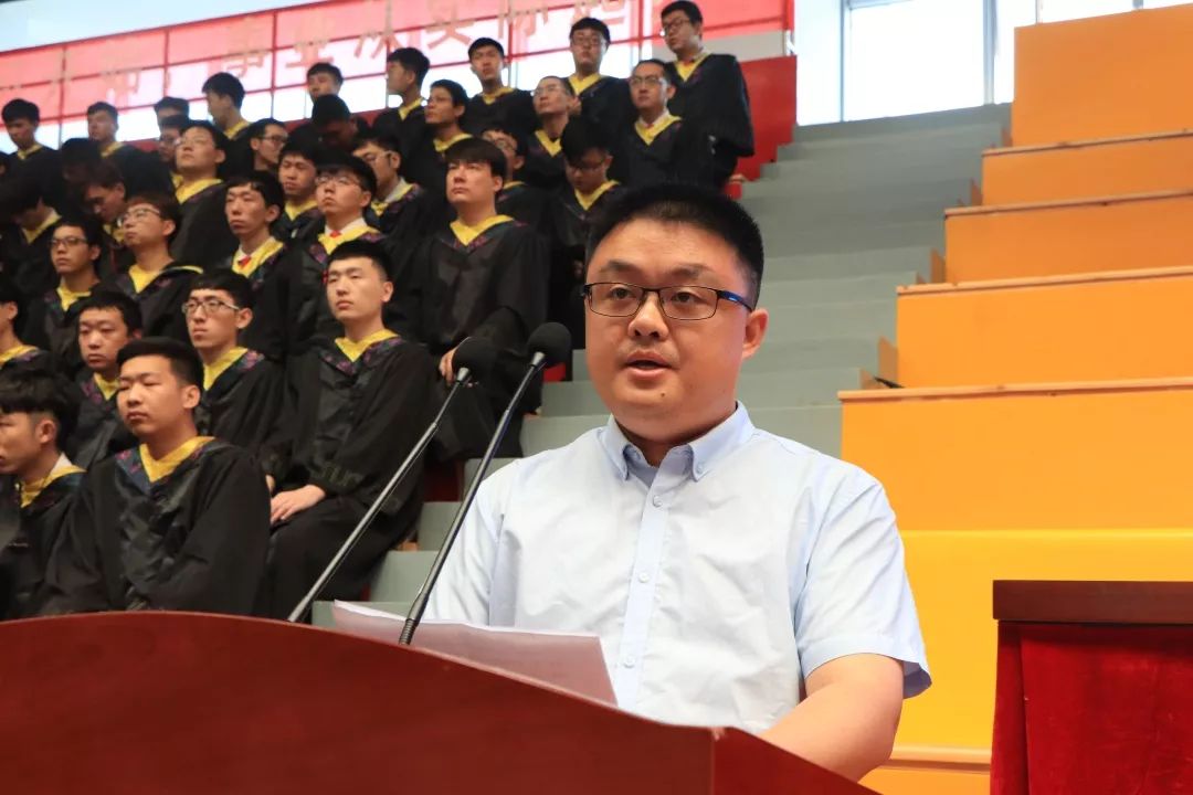机械与动力工程学院老师代伟业代表太阳官网教师发言,他谈到,希望毕业生们不忘初心,牢记人生最本质的输赢取决于正直、坚毅的品格。