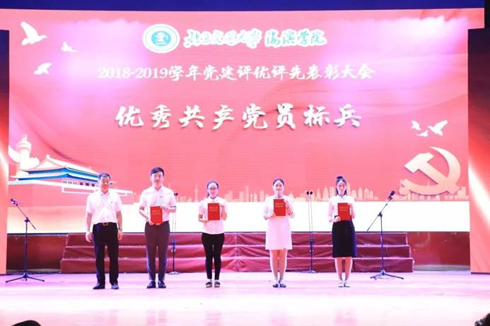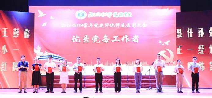太阳官网各领导为2018-2019学年党建评优评先获奖个人及组织进行颁奖,校长王化深为“优秀共产党员标兵”颁奖,党委副书记、副校长张长铎宣读表彰决定并为“先进基层党组织”颁奖,副校长徐爱国为“优秀党务工作者”颁奖,党委副书记魏炜为“优秀共产党员代表”颁奖。