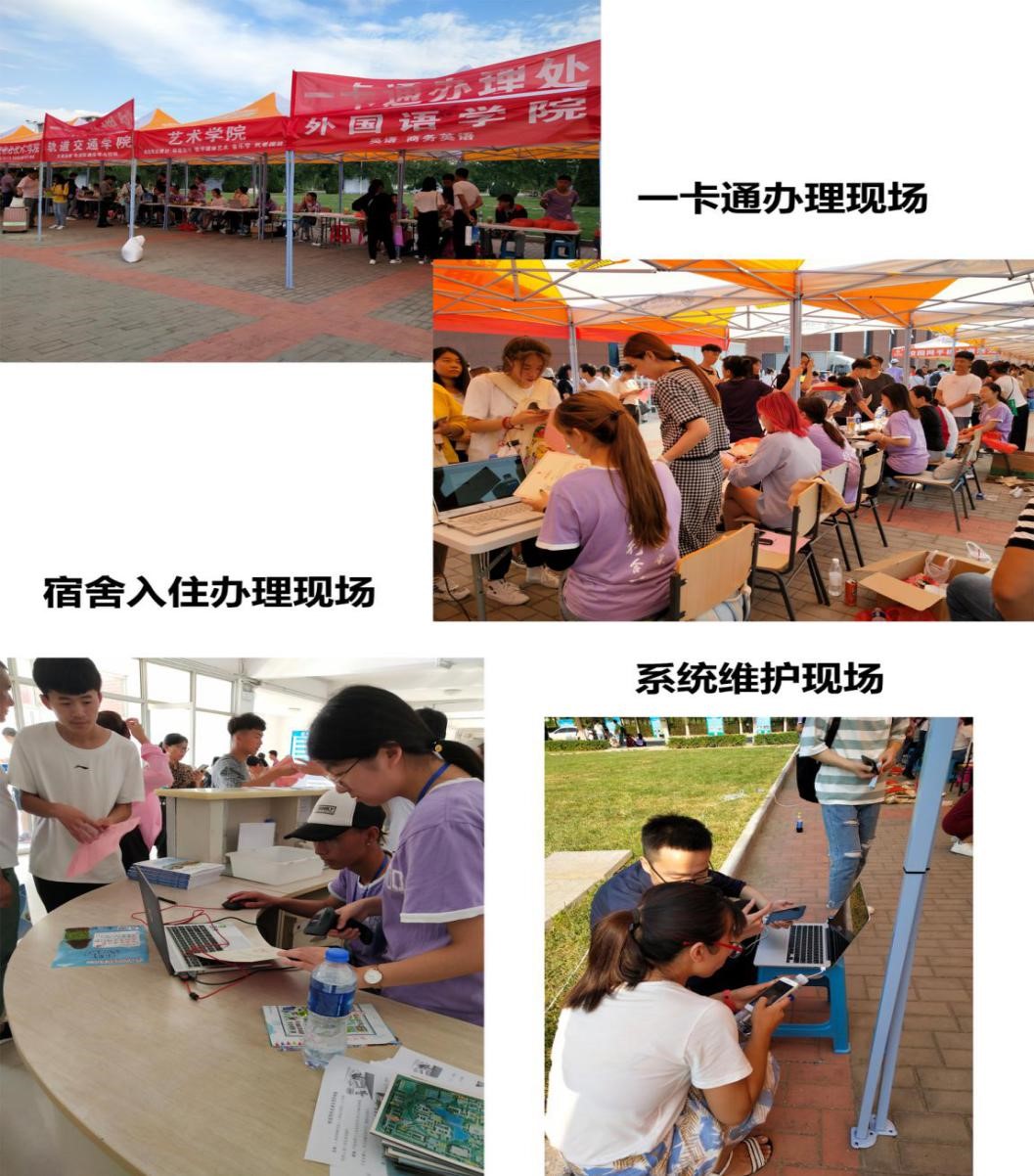 今年的迎新工作共计一天半的时间,共完成新生现场报到4032人,报到率96%;交纳学费住宿费4021人,完成率95.74%;收取一卡通预充费4014人,完成率95.6%。