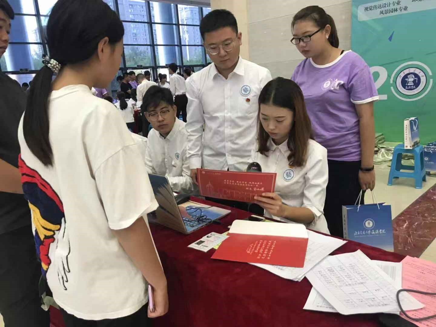 在今年迎新工作中,海滨学院整合了各方服务资源,上线“智慧迎新系统”。新生在暑假期间收到录取通知书后,就可按照入学指南的要求,在网上了解报到流程、入学须知,通过关注学校微信公众号进入迎新系统,实现网上报到全过程。