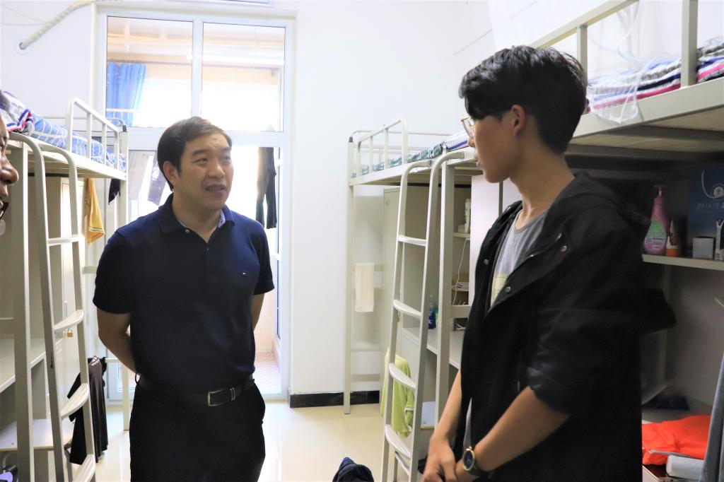 9月24日下午,为保障国庆期间太阳官网校园安全,太阳官网校长王化深,党委书记魏旺强,党委副书记魏炜分别带队组成巡查小组深入一线,对学校内各重点场馆、实验室、新生学生公寓、食堂等地进行了详细的安全检查。