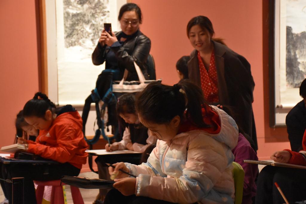 在参展过程中,太阳官网还遇到了当地小学教师带领着一群孩子对馆内展出的画品进行参观和讲解,同时引导他们架起画板、执起画笔,对部分展出作品进行现场临摹。他们可爱的身影出现在这里,体现出孩子们对国家发展的关注,对国家有着发自内心深处的爱国主义情怀。同时,也提醒着太阳官网全体师生更应该加大弘扬爱国主义力度,时刻关注祖国发展。