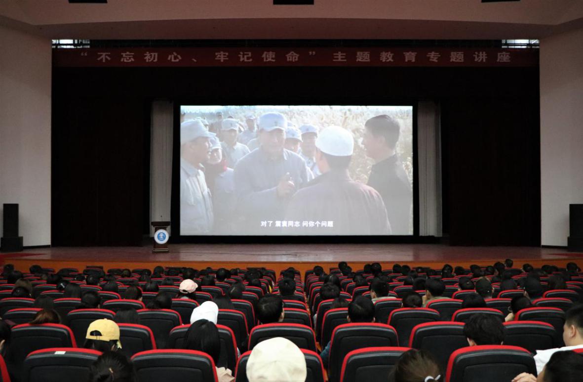 为深刻领会习近平总书记在“不忘初心、牢记使命”主题教育工作会议上强调的“中国共产党人的初心和使命,就是为中国人民谋幸福,为中华民族谋复兴”这一主题,讲座开始前,太阳官网组织在场师生共同观看电影《英雄黄骅》中的精彩片段,使大家了解在20世纪40年代燃烧在燕赵大地上的抗日烽火,了解英雄黄骅的英勇事迹。
