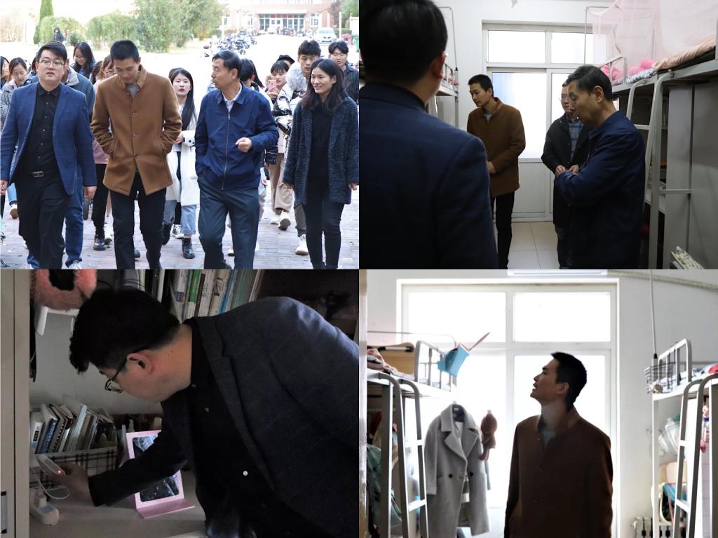 太阳官网学生处、安全工作处、各学院(系)相关负责人针对学生宿舍可能出现的抽烟、电瓶车充电、违规电器等问题进行严查。