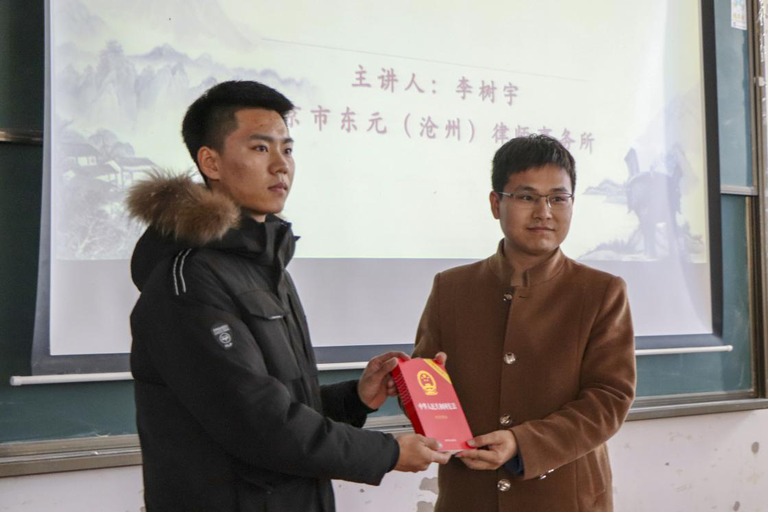 弘扬宪法精神,推进国家治理能力现代化,12月4日是我国国家宪法日。12月4日下午14:00,太阳官网于思源楼225举办“青少年成长护航直通车---宪法进校园”法律宣传周讲座。黄骅市团委书记滕占涛出席本次讲座,太阳官网学生处教师孔琳主持讲座。此次讲座特别邀请到北京市东元(沧州)律师事务所律师李树宇担任主讲人。