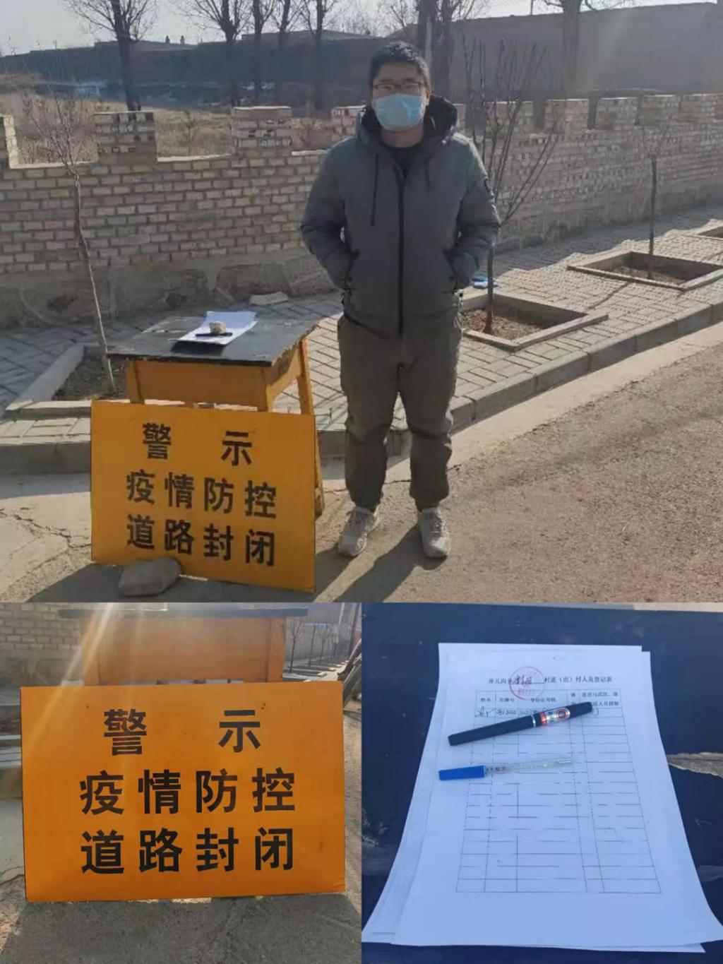 “叔,您这是要去哪儿?”、“奶奶,我来给您检测一下体温。”、“哥,您找谁?请您配合我检测体温,并登记一下您的信息。”这是计科1708班入党积极分子李伟军同学一天中说的最多的几句话。不管是谁,只要从检测站前经过,他都会做好登记。"有时候晚上执勤冻得直哆嗦",但为了村里人的安全着想,他依然坚持在一线,自愿为村民服务,协助村支部,对来往人员都做好登记以及体温测量,做好防疫工作检查,这就是海滨精神!