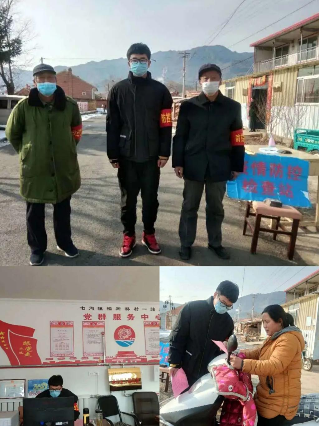 疫情当前,计算机科学与技术1904班朱博辉在河北省承德市平泉县七沟镇榆树林村党支部,参与抗疫志愿服务活动。他在村里疫情防控站执勤,管理外来人员和内部人员的进出,在榆林村党支部做统计村民信息、排查隐患的工作,帮助村民科学合理地防控,充分展现了大学生的责任与担当,这也是他想为祖国贡献力量的决心。