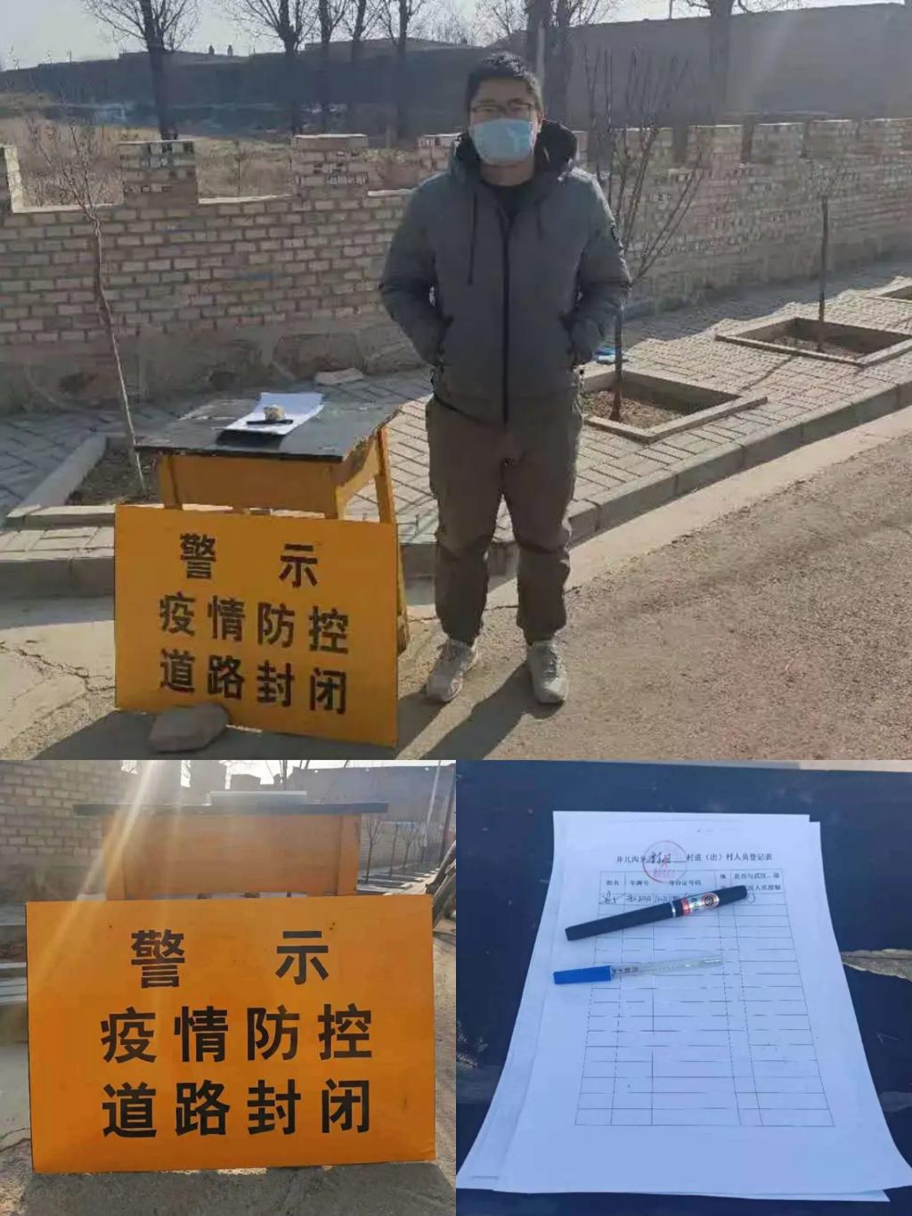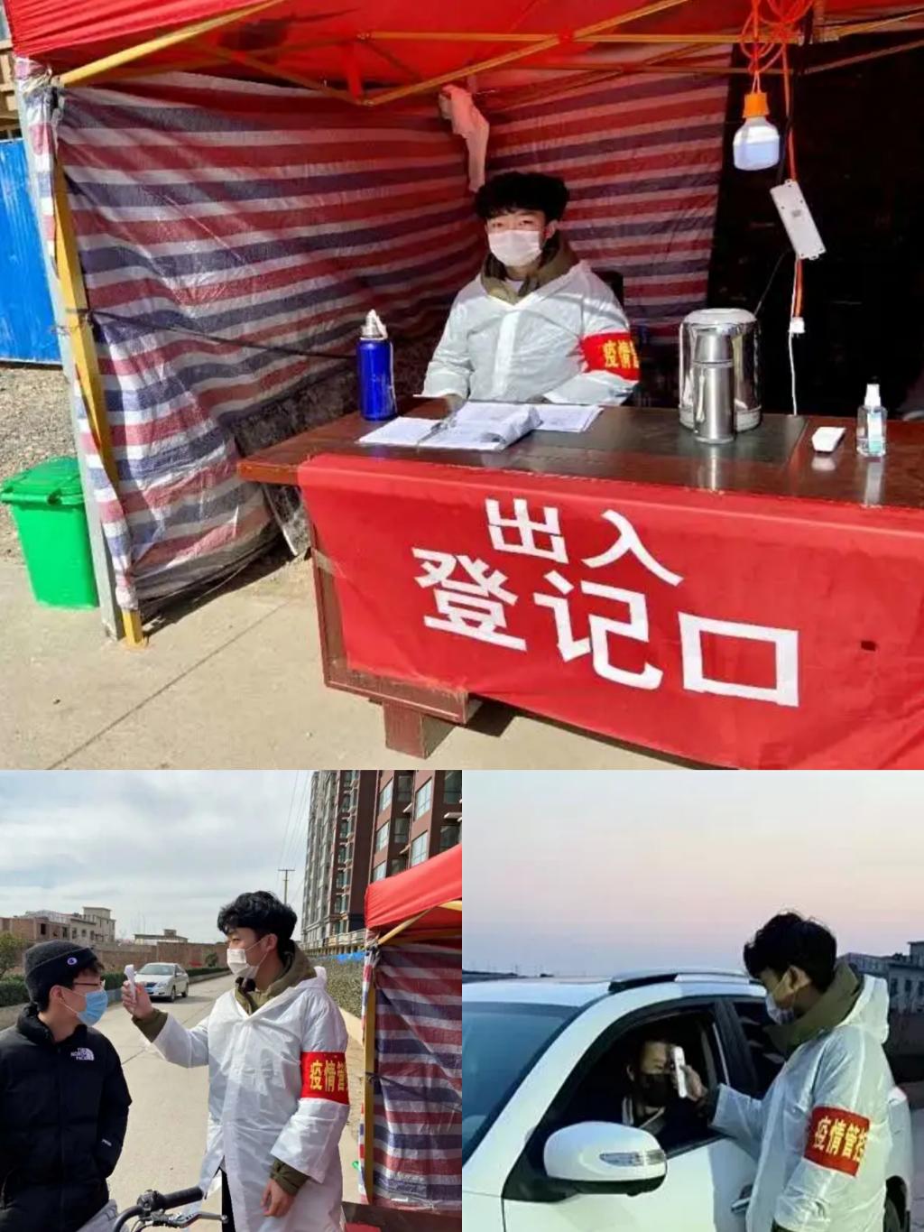 “叔,您这是要去哪儿?”、“奶奶,我来给您检测一下体温。”、“哥,您找谁?请您配合我检测体温,登记一下您的信息。”……计算机科学与技术1708班李伟军对一天中过路的人员亲切问候,不管是谁,只要从检测站前经过,他都会做好登记,用朴实的话语,向乡亲们传递他的热情。