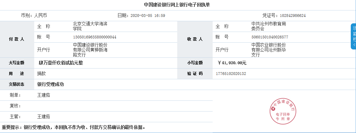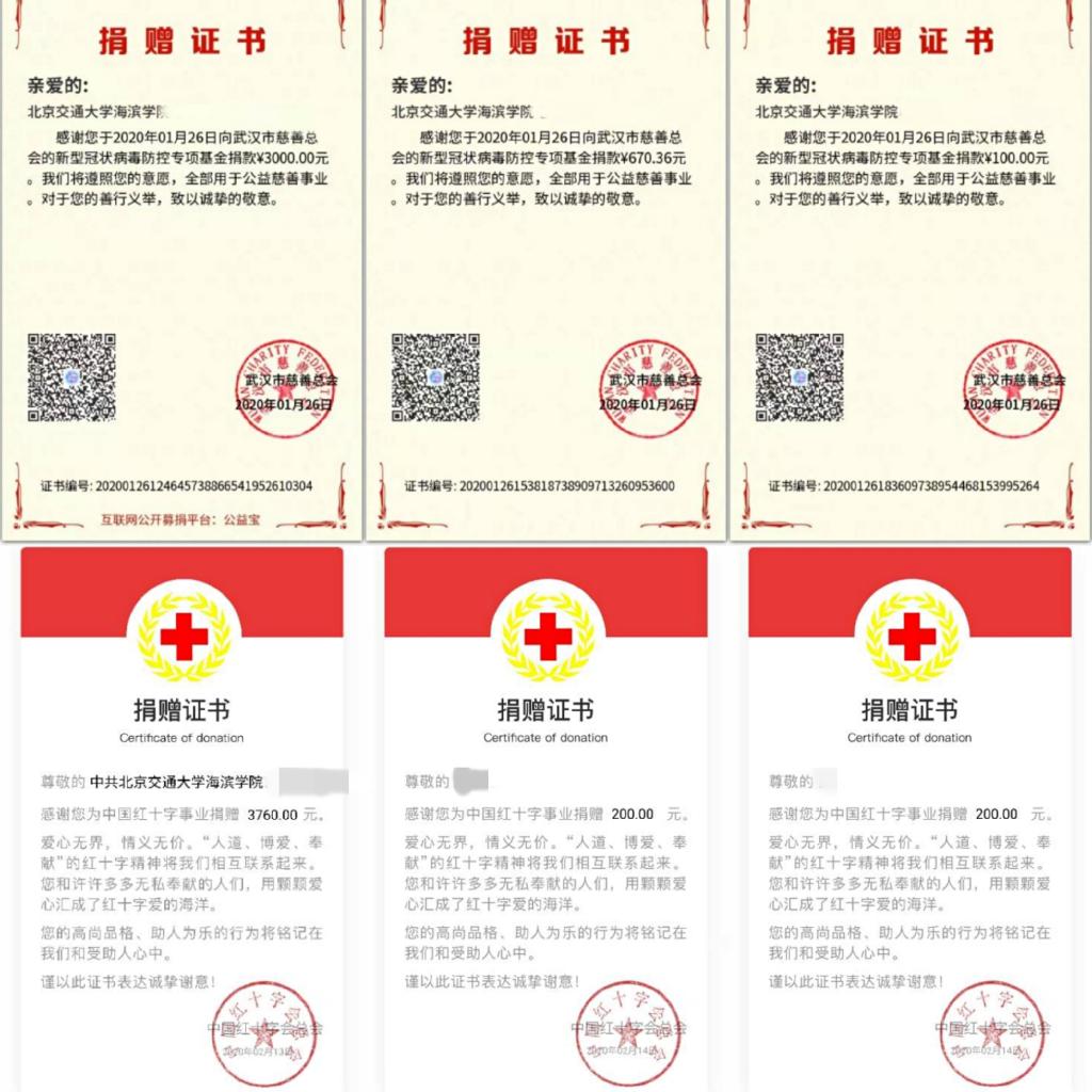 部分捐款证书