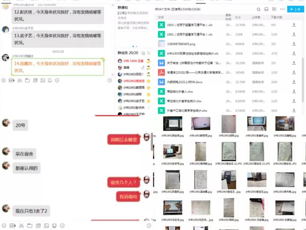 计算机与信息技术学院2019级辅导员高娟表示,“累点不重要,学生健康安全是我们最大的心愿。”当疫情阻挡我们归校的步伐时,最担心、最放心不下学生的人便是辅导员老师,他们虽然身在家,却心系五湖四海的学生们。高娟老师说:“每天在群里问候大家,你们不要嫌我唠叨,在特殊时期要确保你们每个人都是健康的,我才能放心。”
