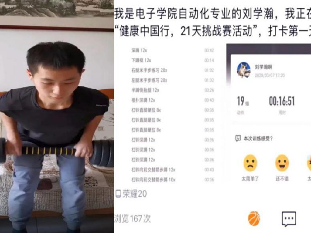 电气专业赵怀理同学谈到,二十一天挑战赛驱使他坚持俯卧撑,使他提高了身体的静力性和动力性等力量素质,改善了中枢神经系统。在他看来,不管做什么,感受到进步都是一件非常幸福的事,第二天比第一天能坚持更长的时间,轻松完成之前做不到的动作,会给予他一种强大的动力。