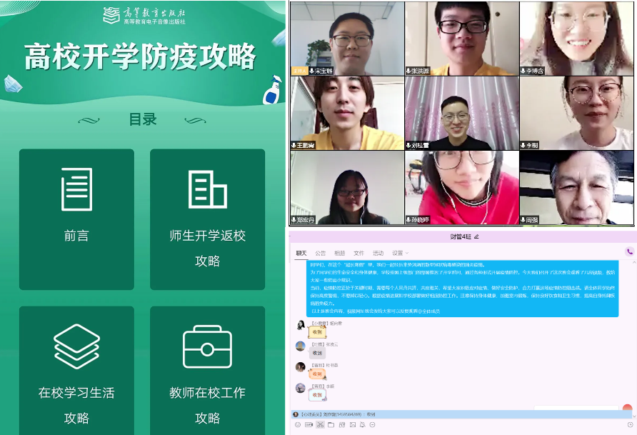 为进一步提高学习效果,太阳官网各院系采用分专业、分班级集体学习研讨的方式,借助腾讯课堂、腾讯会议、钉钉等媒体平台,通过精选视频和PPT演示,辅导员老师、班主任、班干部组织学生集体学习交流相关内容,包括对传染病防控相关法律法规、新冠肺炎基本知识、日常防控操作技能和应急处置措施的学习研讨活动,进一步规范指导学生提升防控专业技能。