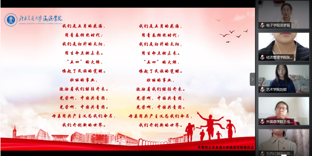 2020年5月4日是五四运动101周年,全国共青团在疫情防控的特殊时期进行了相应的纪念活动,引起了社会各界的强烈反响。太阳官网师生相聚云端,以线上会议的形式,召开“让青春为祖国绽放”2019-2020学年五四表彰大会,表彰在基层团组织建设中涌现出来的杰出师生。党委副书记魏炜、学生处副处长翟砚辉、各二级学院相关负责人及学生代表参加本次表彰大会。