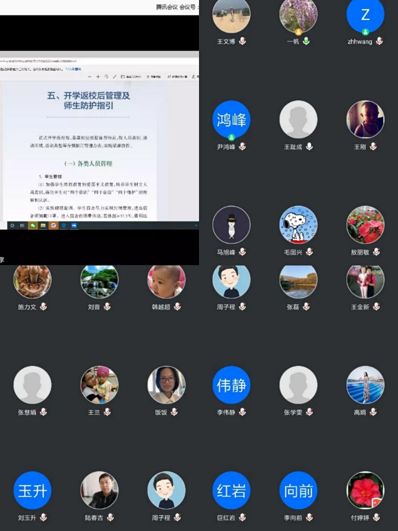 第二阶段,为确保疫情防控常识入脑入心,计算机与信息技术学院通过云会议,对学院教职工进行疫情防控培训。副院长任一帆在会议上向全体教师详细解读《高等学校新型冠状病毒肺炎防控指南》中的“开学返校后管理及师生防护指引”和“如何正确洗手”、“中国疾控动态”中的《大专院校新冠肺炎疫情防控技术方案》,详细观看“中国疾控中心专家教你正确使用消毒剂”,并就校园有关管理规定做了强调,努力将疫情防护措施与危害等知识至于心中。