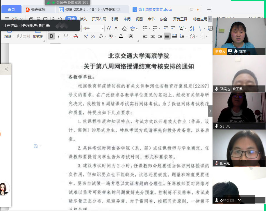 面对第一次线上结课考试,在考前学校领导、教务处以及化学工程系全体教师多次召开线上会议,对此次考试进行周密安排、明确分工,确保考试规范有序开展。