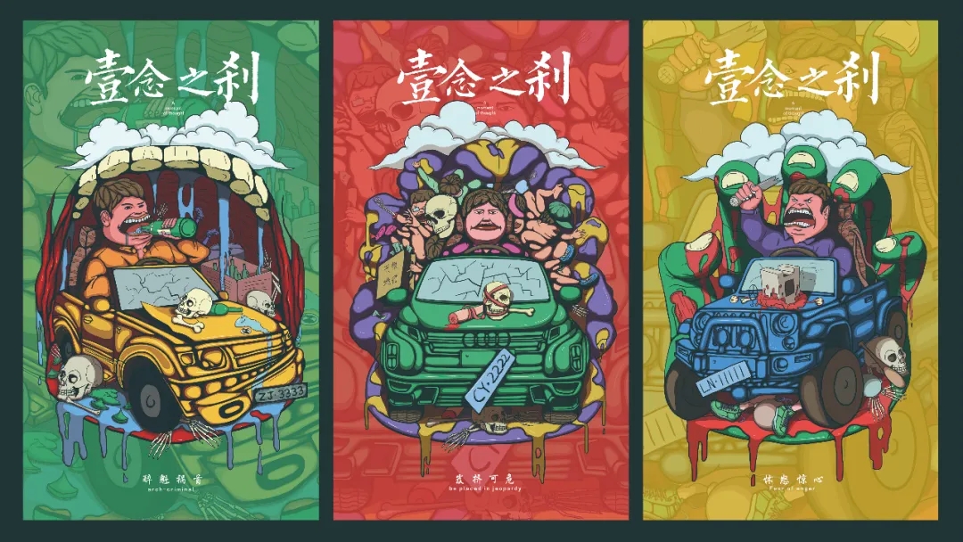 创作灵感:以插画的形式分别从酒驾、路怒、超载三个方面进行招贴设计,