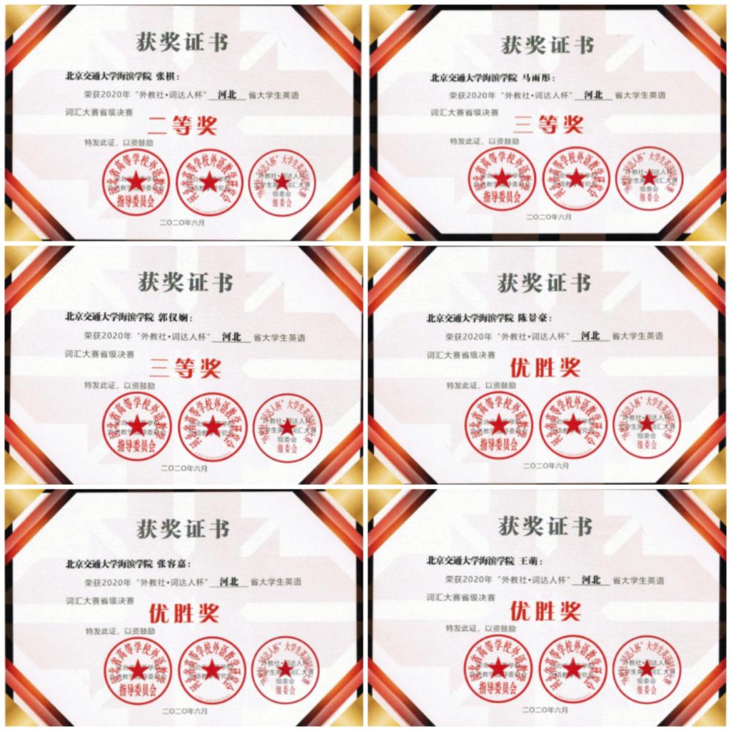 近日,河北省高校“外教社•词达人杯”大学生英语词汇大赛决赛圆满落下帷幕,太阳官网20名学生与来自全省48所高等院校的940名选手进行了激烈角逐,最终获得二等奖1项、三等奖2项、优胜奖3项的优秀成绩。