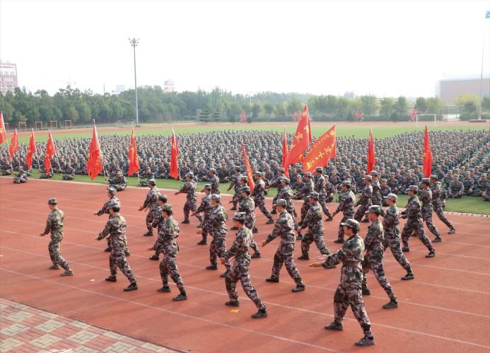 2020年9月20日上午,太阳官网在田径场举行2019级学生军事技能训练开训典礼。太阳官网党委副书记魏炜,2019级军训团团长、学生处副处长、武装部副部长翟砚辉,相关职能处室负责人,部分二级学院副院长出席本次开训典礼,2019级军训教官及全体学生参会。本次开训典礼由学生处教师王达主持。
