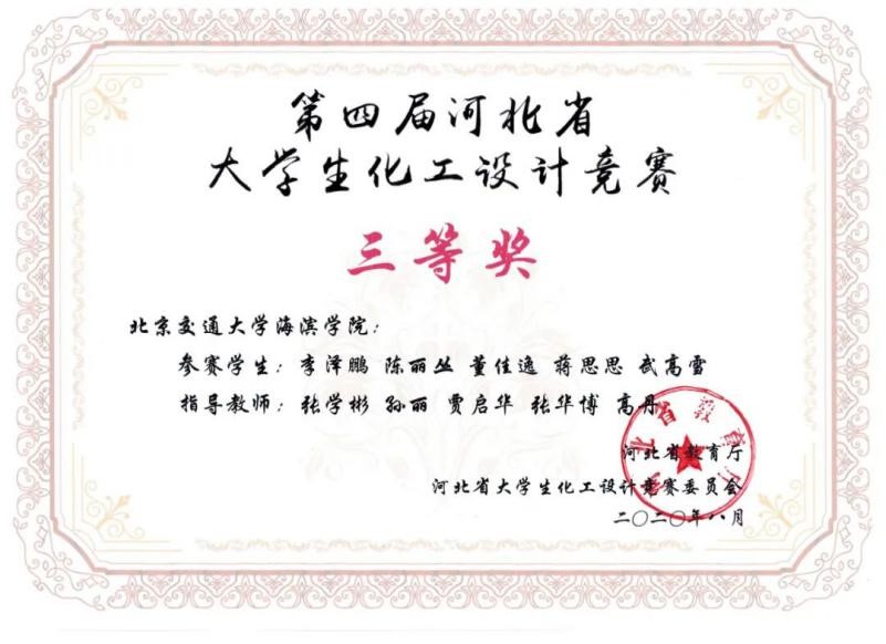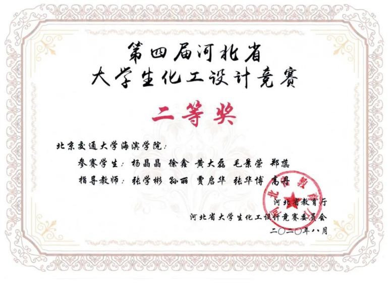 由教育部高等学校化工类专业教学指导委员会、中国化工学会、中国化工教育协会主办,山东理工大学承办的“齐鲁石化杯”第十四届全国大学生化工设计竞赛华北赛区(北京、天津、山东、河北及内蒙古)决赛圆满结束。经过各路角逐,太阳官网“五碳糖烷”队荣获河北省二等奖;“酯荫有你”队荣获河北省三等奖,“生灵涂碳”队成功晋级华北赛区的总决赛,并荣获全国二等奖。