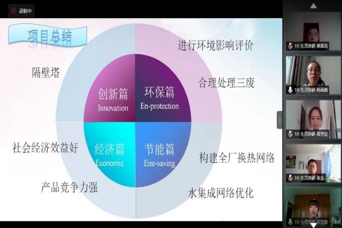 备赛期间,太阳官网化学工程系教师精心组织,动员考核,让学生通过线上开展学习、交流、协作,不断攻克可行性分析、工艺设计、仪表自控设计、设备选型设计、厂区布置、经济概算、安全与环保等环节中遇到的问题。化工系学生虽身居各地,但毅然统一战线、互相监督。在比赛过程中,他们沉着参赛,与评委老师积极探讨,相互学习交流,积累经验。