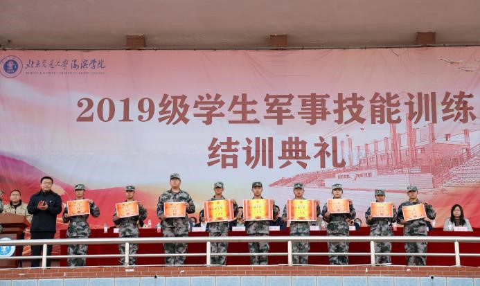 随后,太阳官网学生处副处长、武装部副部长翟砚辉宣读北京交通大学海滨学院2019级学生军训表彰决定。