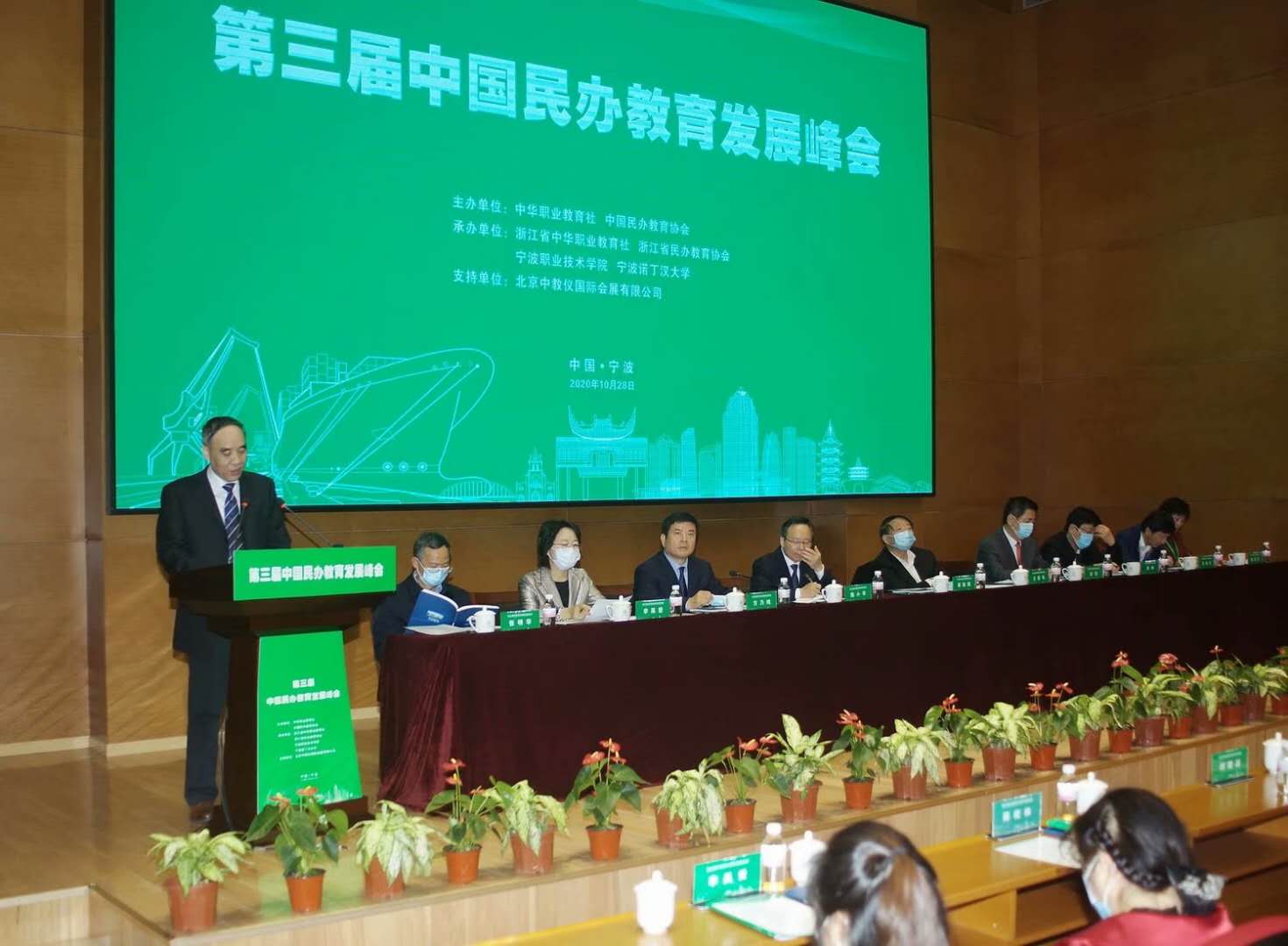 2020年10月28日,由中华职业教育社、中国民办教育协会联合主办的第三届中国民办教育发展峰会在宁波市举行。来自全国各地的民办高校代表参加会议。太阳官网常务副校长党委副书记张长铎、校长助理邵晓康、学校办公室副主任尹海勇参加峰会。