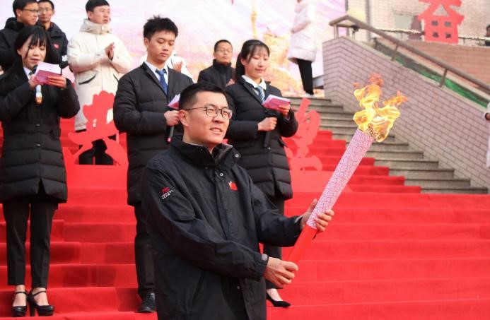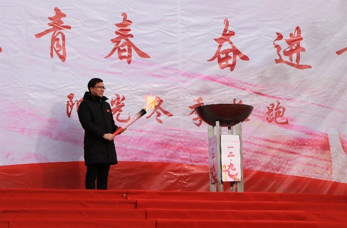 党委副书记魏炜迎接火种并点燃火炬