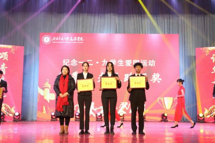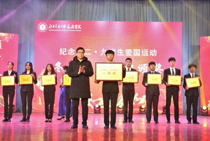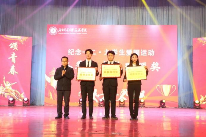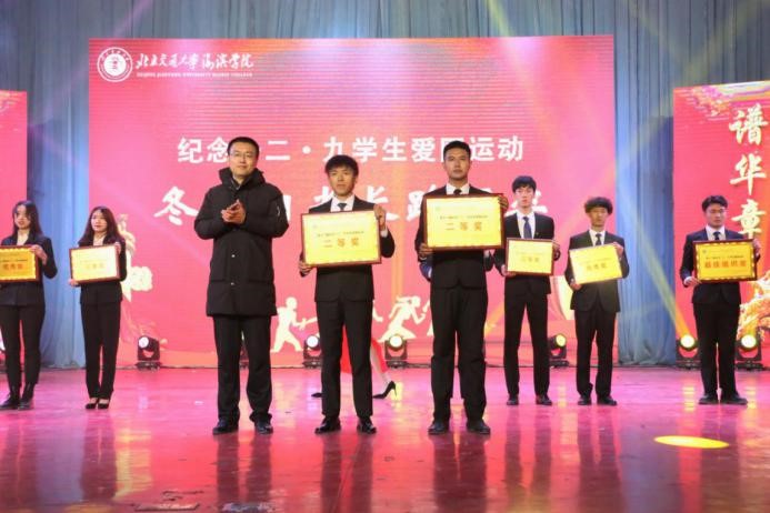 参会领导为此次“团结战疫颂青春,奋进青年谱华章”纪念一二·九爱国运动阳光长跑的获奖学院颁奖。