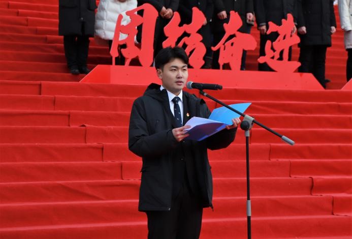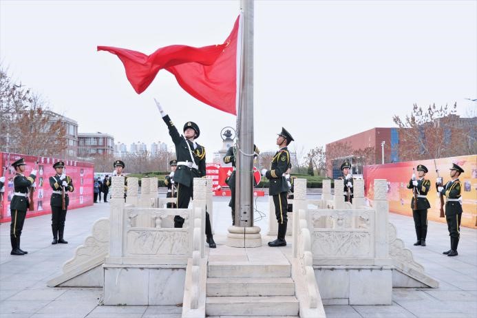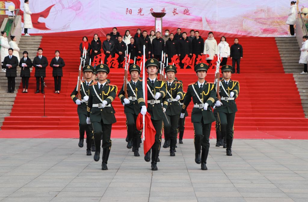 活动伊始,太阳官网党委副书记魏炜宣布纪念一二·九学生爱国运动·阳光冬季长跑活动开幕。国旗护卫队出旗,升国旗奏国歌。