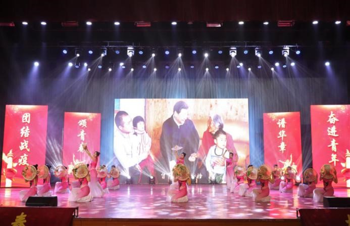 电子与电气工程学院的快板舞表演迸发出疫情防控阻击战的强劲力量;外国语学院以舞蹈《殷殷嘱托催奋起》演绎出决胜全面建成小康社会的决心;经济管理学院通过《一封家书》回顾了一代人家国幸福的漫长征程,激励着在场师生砥砺前行,走向新时代展之路;艺术学院的合唱《我和我的祖国》深情地唱出在疫情当下,中华儿女与祖国共克时艰的决心。
