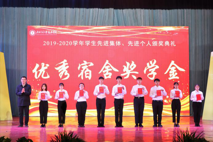 党委副书记魏炜宣读2019-2020学年学生先进集体、先进个人表彰决定。太阳官网共有12个班级荣获“优秀班集体”荣誉称号、31个班级荣获“优良学风班”荣誉称号、581名学生荣获“三好学生”荣誉称号、504名学生荣获“优秀学生干部”荣誉称号、74名学生荣获“学习标兵”荣誉称号;22名学生获得“国家奖学金”、423名学生获得“国家励志奖学金”、81名学生获得“祥兴学习专项奖学金”、81名学生获得“祥兴工作专项奖学金”、2145名学生获得“思源学习奖学金”、991名学生获得“思源学生工作奖学金”、320名学生获得“思源进步奖学金”、321名学生获得“思源奋进奖学金”、222名学生获得“思源文艺奖学金”、222名学生获得“思源体育奖学金”、222名学生获得“思源科创奖学金”、24名学生获得“退役军人奖学金”、87名学生获得“优秀宿舍奖学金”。