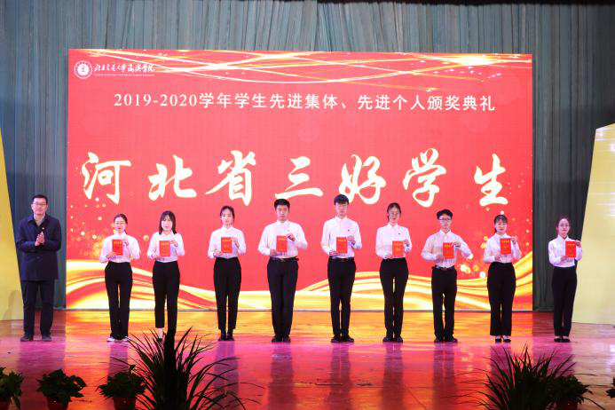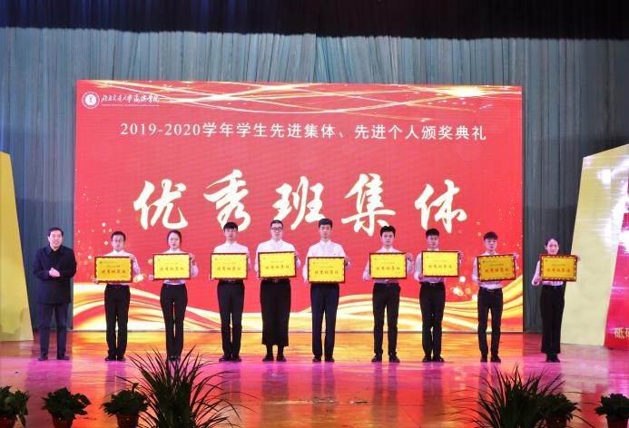 党委书记魏旺强为获得“河北省先进班集体”、“优秀班集体”、“优良学风班”的代表颁奖