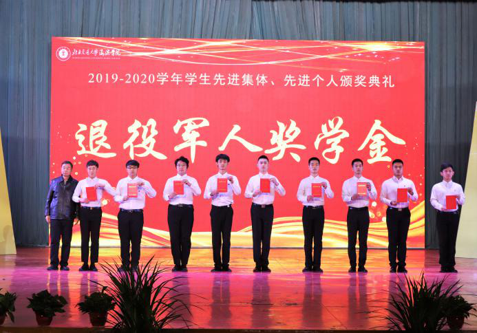 副校长赵金楼为获得“退役军人奖学金”、“三好学生”、“学习标兵”、“优秀学生干部”的代表颁奖