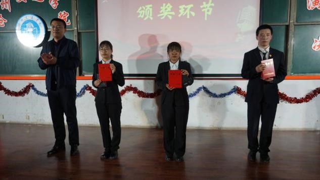 黄骅团市委书记滕占涛为一、二、三等奖获奖学生颁奖