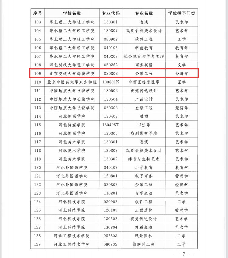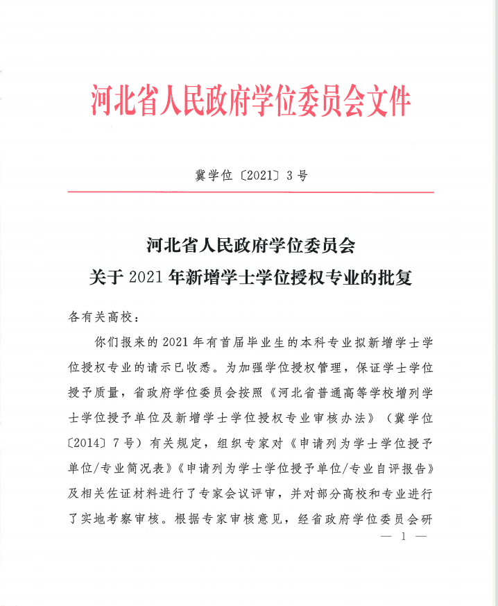 近日,河北省学位办发布了《河北省人民政府学位委员会关于2021年新增学士学位授权专业的批复》(冀学位〔2021〕3号),太阳官网金融工程专业通过专家组进校实地考察审核的方式,顺利获得学士学位授权。至此,太阳官网拥有学士学位授予权的专业总数已达到30个。