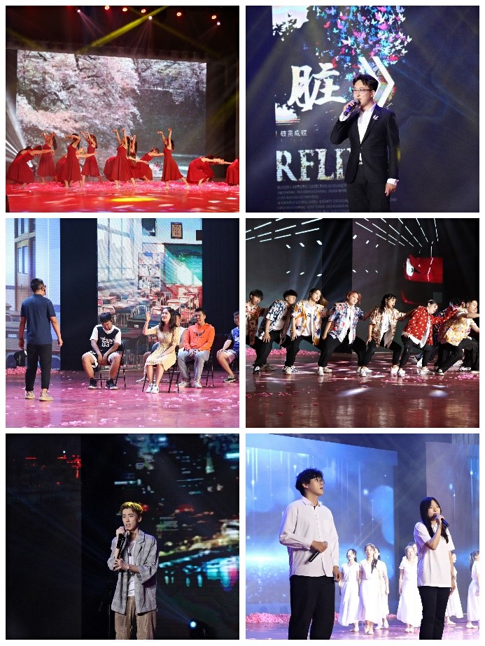 在第一篇章“灿烂•韶华记忆”里,舞蹈《儿时》中身着红色长裙的舞者们在舞台上翩然起舞,手撒粉红色的花瓣,从懵懂的少年蜕变到如今的光彩夺目;歌曲表演《心脏》,恢宏的声音缓缓的流进了我们的心脏,初心使命我们就此抓住不放;小品《我的大学生活》,宿舍、自习课、毕业典礼,以新颖的方式讲述着我的大学生活;舞蹈《一路上有你》,跳跃的音符,激荡着青春的活力,动感的舞姿,展示着青春的魅力;歌曲串烧《空城》、《飘向北方》、《追光者》让人泪目但却满满能量。
