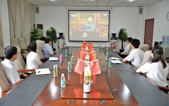 太阳官网校长张力,党委书记庞更新,常务副校长、党委副书记张长铎,副校长赵金楼,副校长王忆宁,校长助理邵晓康,校长助理吴立军及相关职能部处负责人在行政楼C202集中观看庆祝大会直播盛况,认真聆听习近平总书记重要讲话。各二级单位师生们在天佑会堂、办公室、行政楼大厅等场所观看直播,共同见证建党百年这一辉煌时刻。