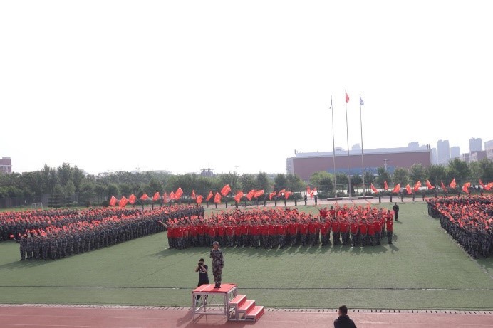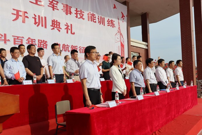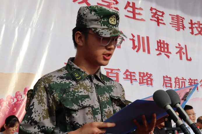 军训学员们手持红旗组成“1921-2021”、“党徽”、“中国”字样的方阵,并齐唱《唱支山歌给党听》、《没有共产党就没有新中国》等红色经典歌曲,共抒爱国爱党之情,在百米红卷上为我们的党和祖国送上美好的祝福。