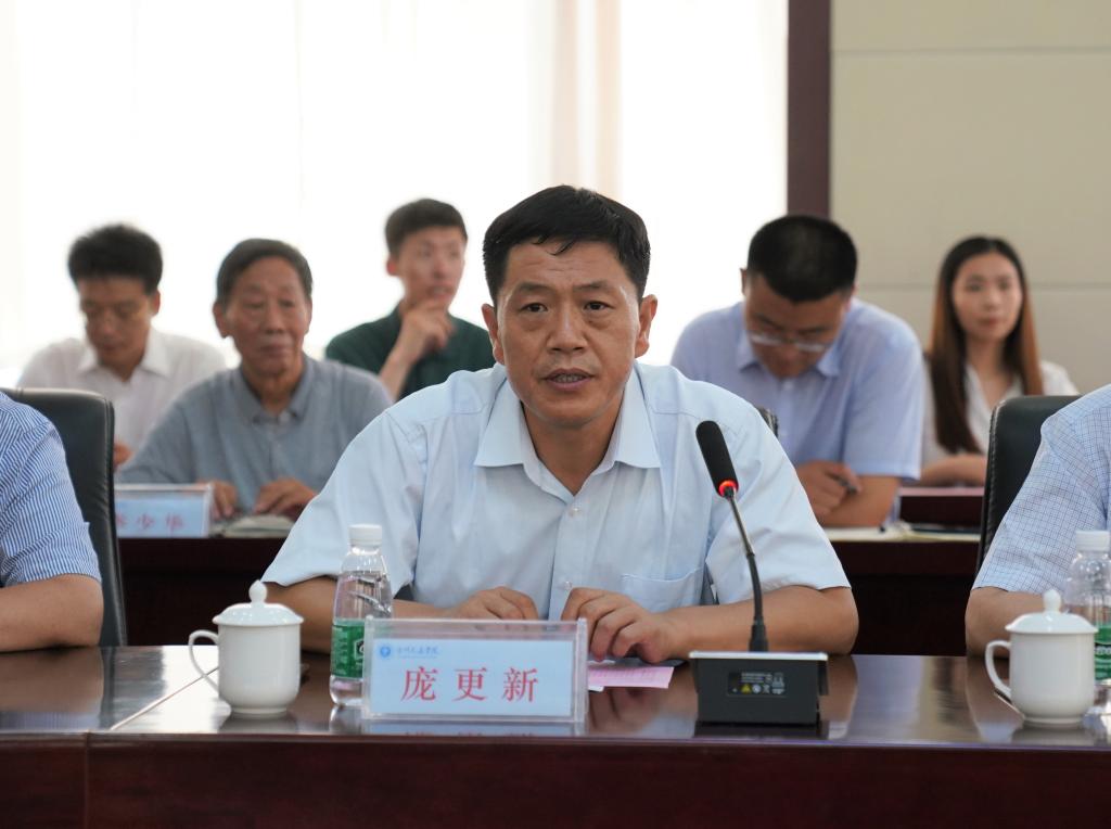 党委书记庞更新主持座谈会,庞书记希望两校今后能够加强交流及深度合作,为地方经济发展做贡献。